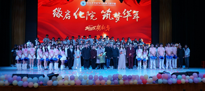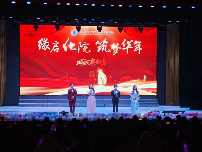 于东校区大礼堂隆重举办2025年“缘启化院 筑梦华年”元旦晚会。学校学生就业工作处处长徐波、党委学生工作部副部长李秋果、党委研究生工作部副部长黄龙、校团委副书记杜岳青、学院党委书记王丽、副院长肖围、党委副书记杨会军以及学院教师、各学生组织学生代表、学院全体学生参加晚会。本次晚会由许多多、李嘉翔、郭红丽、秦燚主持。