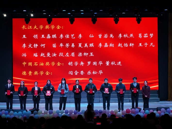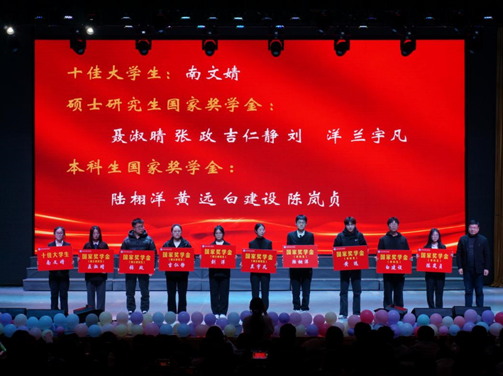 晚会期间,学院举行了隆重的颁奖仪式,对 2024 年度表现出色的个人和团队进行了表彰,以肯定他们过去一年的辛勤付出与卓越表现。此次表彰不仅是对获奖者的高度认可与鼓励,更是激励学院全体同学以他们为榜样,努力争做有理想、敢担当、能吃苦、肯奋斗的新时代好青年。