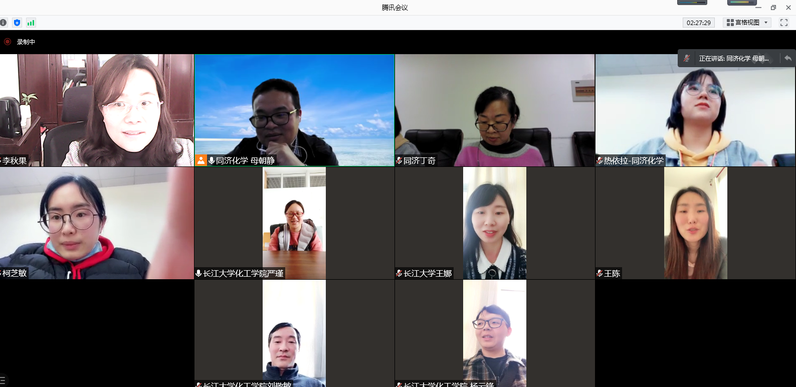 与同济大学化学科学与工程学院以视频方式开展学生工作交流沙龙,两院分管学工的党委副书记、全体辅导员参加会议,本次交流活动由同济大学化学科学与工程学院母朝静书记主持。