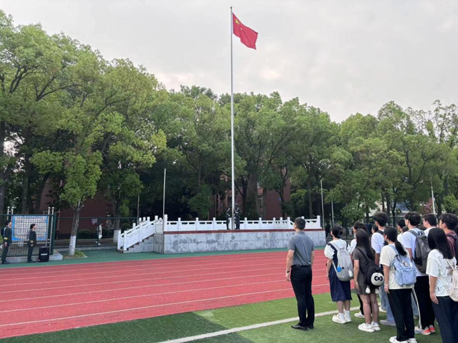 在西校区田径场隆重举行升国旗仪式。辅导员蔡略和麻豆影视