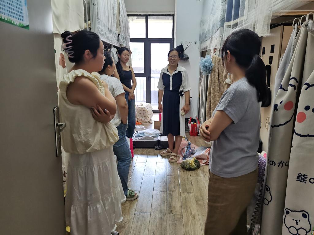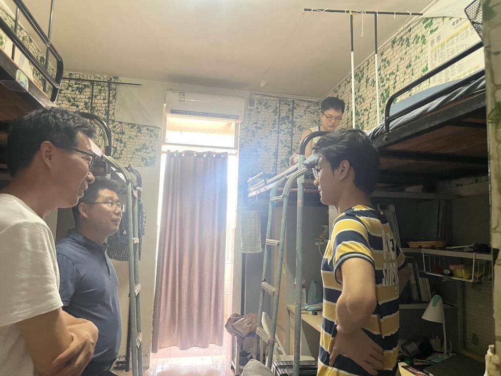 每到一间宿舍,学院老师们与毕业生亲切交谈,详细了解毕业去向、就业情况及未来规划。对于已就业同学,勉励他们在工作岗位上踏实肯干,将理论知识运用到实践中去;鼓励继续深造的同学,希望他们在学术道路上保持探索精神,勇攀学术高峰;对暂未落实去向的学生,结合当前的就业形势,给予职业规划指导,并承诺“就业帮扶通道永不关闭”。同时,老师们反复强调证件保管、行李托运规范,提醒学生警惕租房诈骗和求职陷阱。辅导员同步检查宿舍水电安全,叮嘱离校前办理退宿手续,保障“文明、安全、有序”离校。