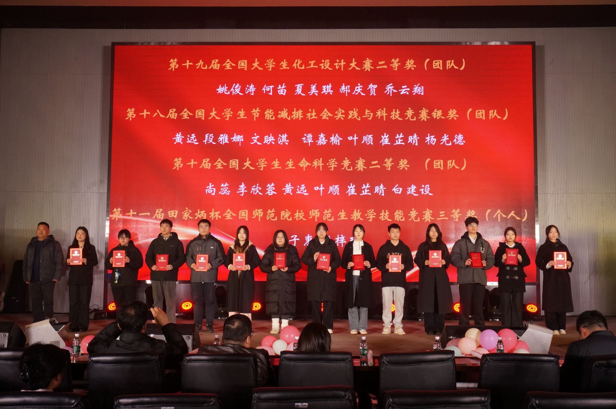 晚会期间,学院举行了隆重的颁奖仪式,对 2025年度表现出色的个人和团队进行了表彰,充分肯定了他们过去一年的辛勤付出与卓越表现。此次表彰不仅是对获奖者的高度认可与鼓励,更是激励学院全体同学以他们为榜样,努力争做有理想、敢担当、能吃苦、肯奋斗的新时代好青年。晚会还精心设置了两轮抽奖环节,运动手环、蓝牙耳机、电影票等精美奖品轮番送出,让新年的喜悦在惊喜互动中不断升温。