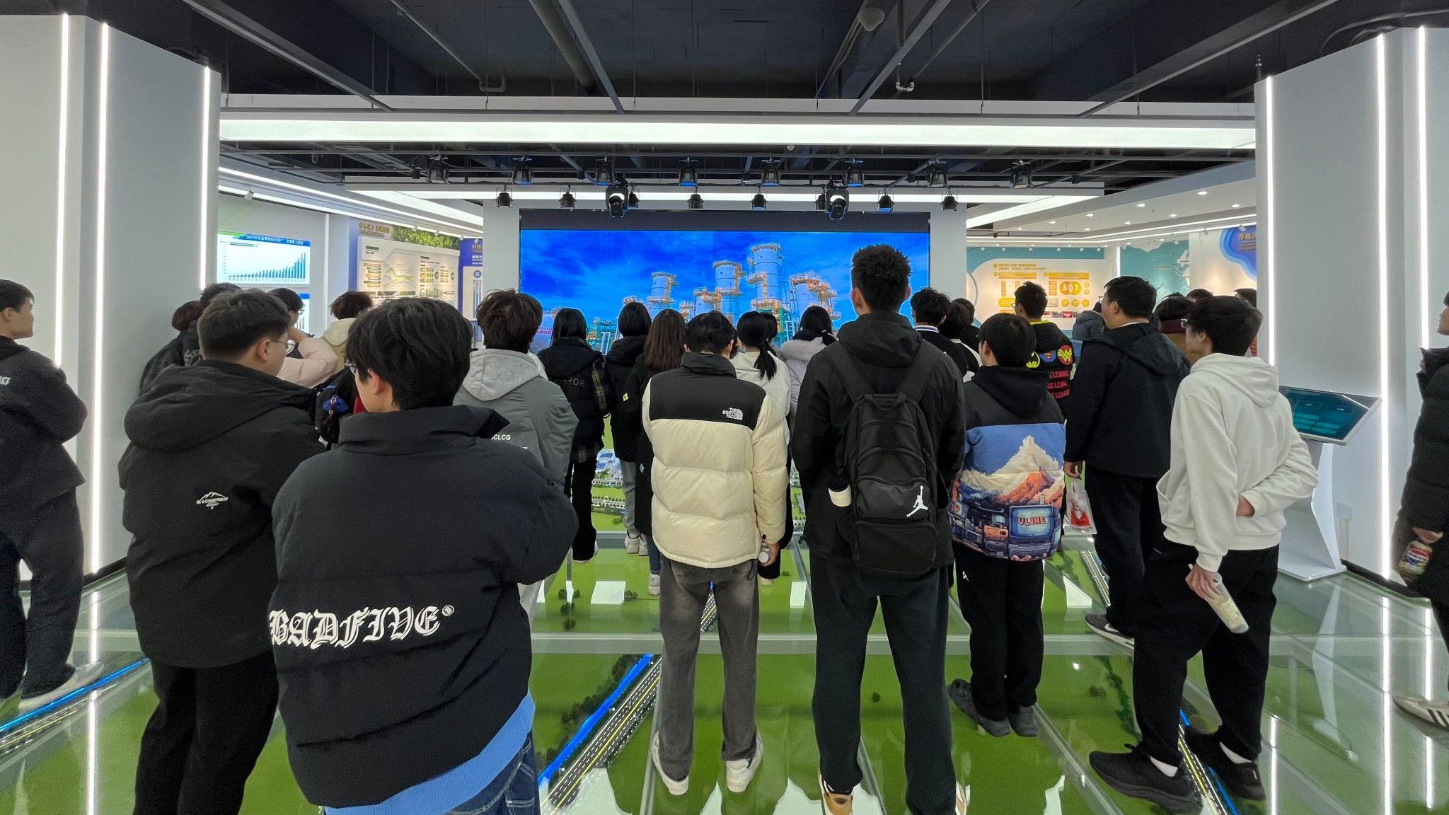 当日下午,同学们分两批有序抵达企业。在公司工作人员的热情接待和引导下,师生们首先参观了企业展厅。通过详实的图文资料和生动的讲解,大家深入了解了华鲁恒升的发展历程、主营业务、核心产品以及在绿色化工、智能制造等方面取得的突出成果。随后,师生一行走进被誉为“生产大脑”的中控室,室内各类智能仪器设备整齐排列,大屏幕上实时跳动着生产数据与监控画面,展现出高度自动化与信息化的现代化工生产场景。工作人员结合实际操作,详细介绍了中控系统的功能、运行机制及在安全生产中的核心作用,激发了同学们浓厚的学习兴趣。