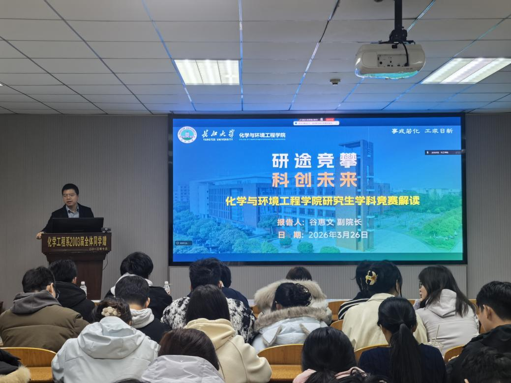 会议伊始,谷惠文副院长以“研途竞攀,科创未来”为主题,系统解读学院研究生学科竞赛支持体系。他强调,学科竞赛是提升科研能力、锤炼综合素养、助力就业深造的关键平台。学院已构建覆盖T类、A+类、A类、B类的完整竞赛图谱,重点支持中国国际大学生创新大赛、“挑战杯”、研究生创新实践系列大赛等高水平赛事。谷院长详细介绍了校、省、国赛分级经费资助、重点赛事差旅全包等全链条保障政策,明确获奖可折算科研积分、参评各类奖学金,部分顶级赛事成果可认定为学位成果。他还分享了学院在“揭榜挂帅”、“挑战杯”等赛事中荣获特等奖、一等奖的优秀案例,激励同学们积极参赛、再创佳绩。