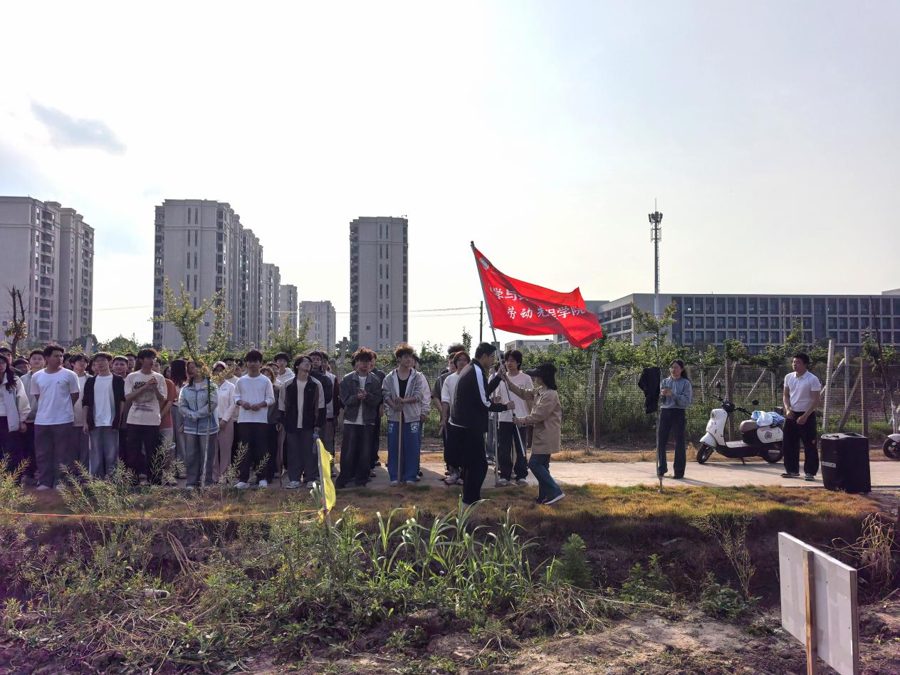 在同学们热烈的掌声中,学院党委书记王丽为“耕耘先锋团”郑重授旗。鲜红的旗帜迎风舒展,既承载着责任与使命,也象征着砥砺深耕、聚力前行的青春担当,标志着学院农耕劳动实践系列活动正式启动。