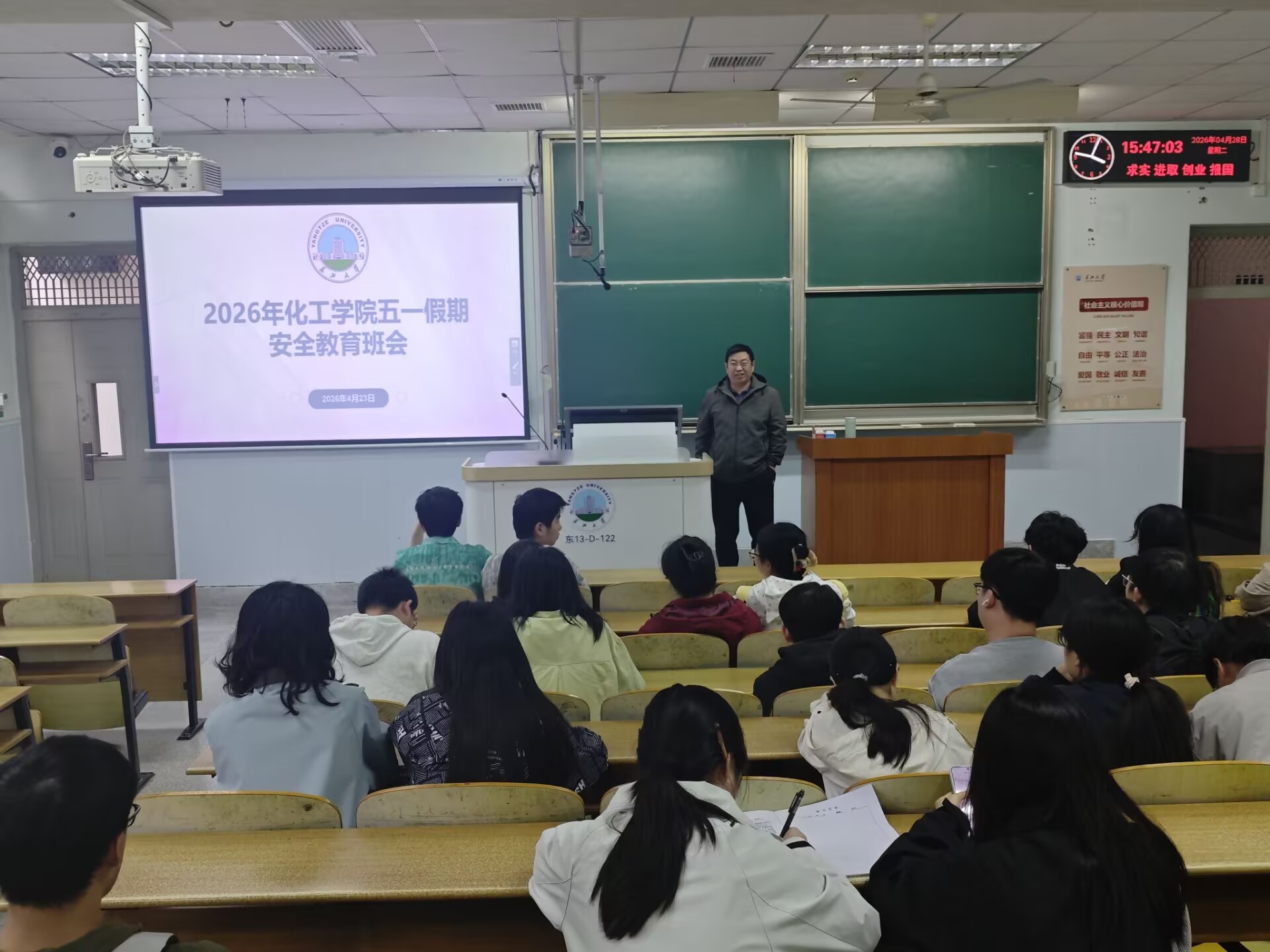 组织全体学生召开五一假期安全主题班会。本次班会分层有序开展,本科生各班由班主任牵头组织,研究生班级由辅导员统筹安排,导师深度参与,实现安全教育全覆盖。