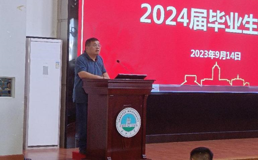 于东校区12教405报告厅举行2024届毕业生大会。学院副院长吴爱斌、肖围,党委副书记杨会军,学工办主任刘敬敏,就业专干周学素老师出席此次大会,2024届全体毕业生参会,会议由刘敬敏老师主持。