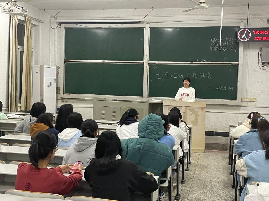最后,组织各班级召开生涯规划主题班会。11月初,学院在21级学生中组织召开“规划职业生涯 预约精彩人生”的生涯规划主题班会,旨在帮助2021级新生顺利度过后疫情时代的“大学适应期”,引导同学们全方位探索自我、专业发展,合理制定切实可行的大学规划,明确大类培养模式下大学生活学习规划的重要性,帮助同学们有序、合理、有效的安排大学阶段的学习与生活。