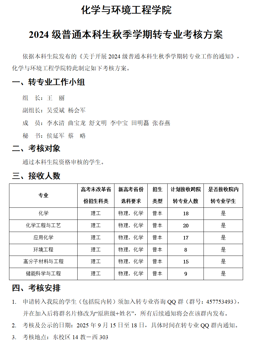 麻豆影视 2024级普通本科生秋季学期转专业考核方案