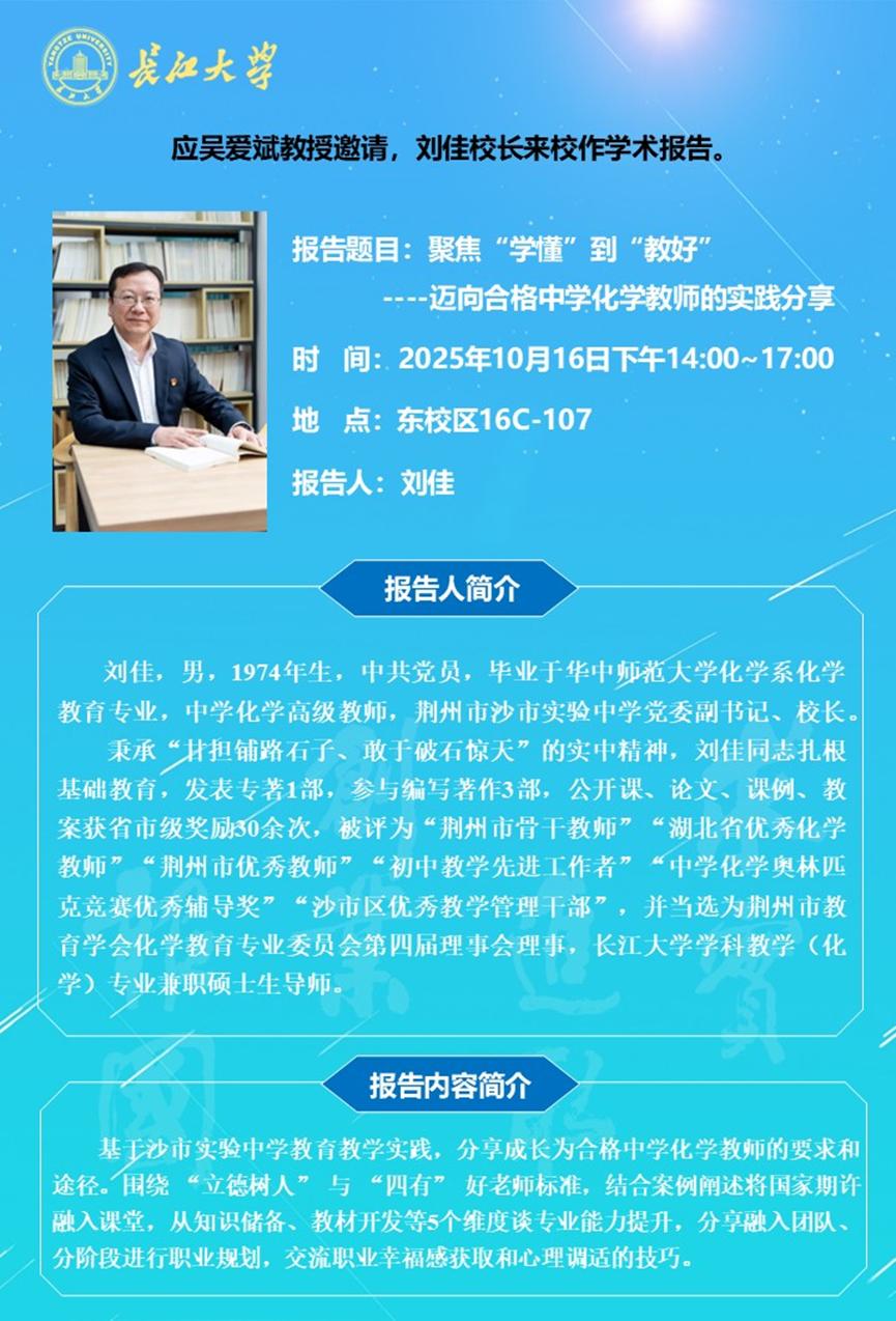 长江化工讲坛:从优秀学生到卓越教师---高中化学教师的成长之路