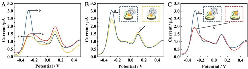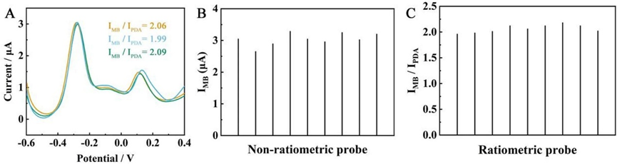 · 本研究结合自报告MIP与原位合成MOF/MXene SP,构建了新型比率电化学传感平台,并首次提出了目标物的三重受体协同识别机制。