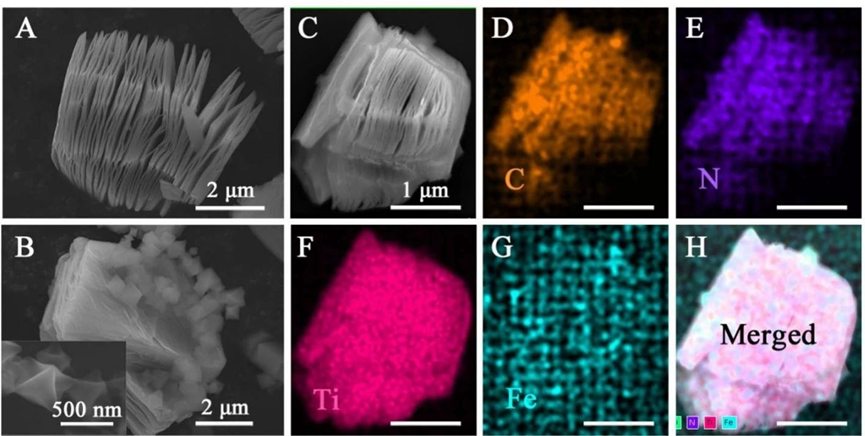 图2. Ti3C2TX Mxene和MIL/Ti3C2TX的SEM及EDS图像